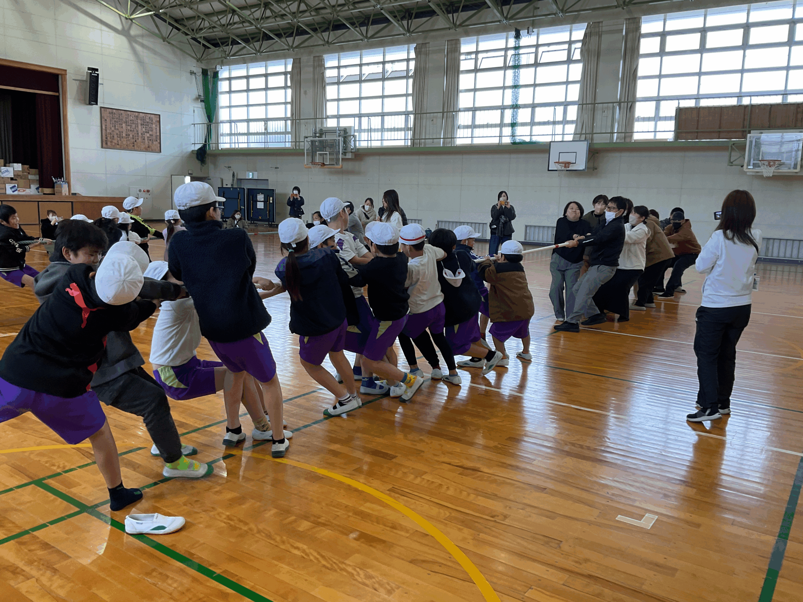 子どもたちの力強さにお家の人もビックリしていました。結果は子どもチームの勝ち?♪