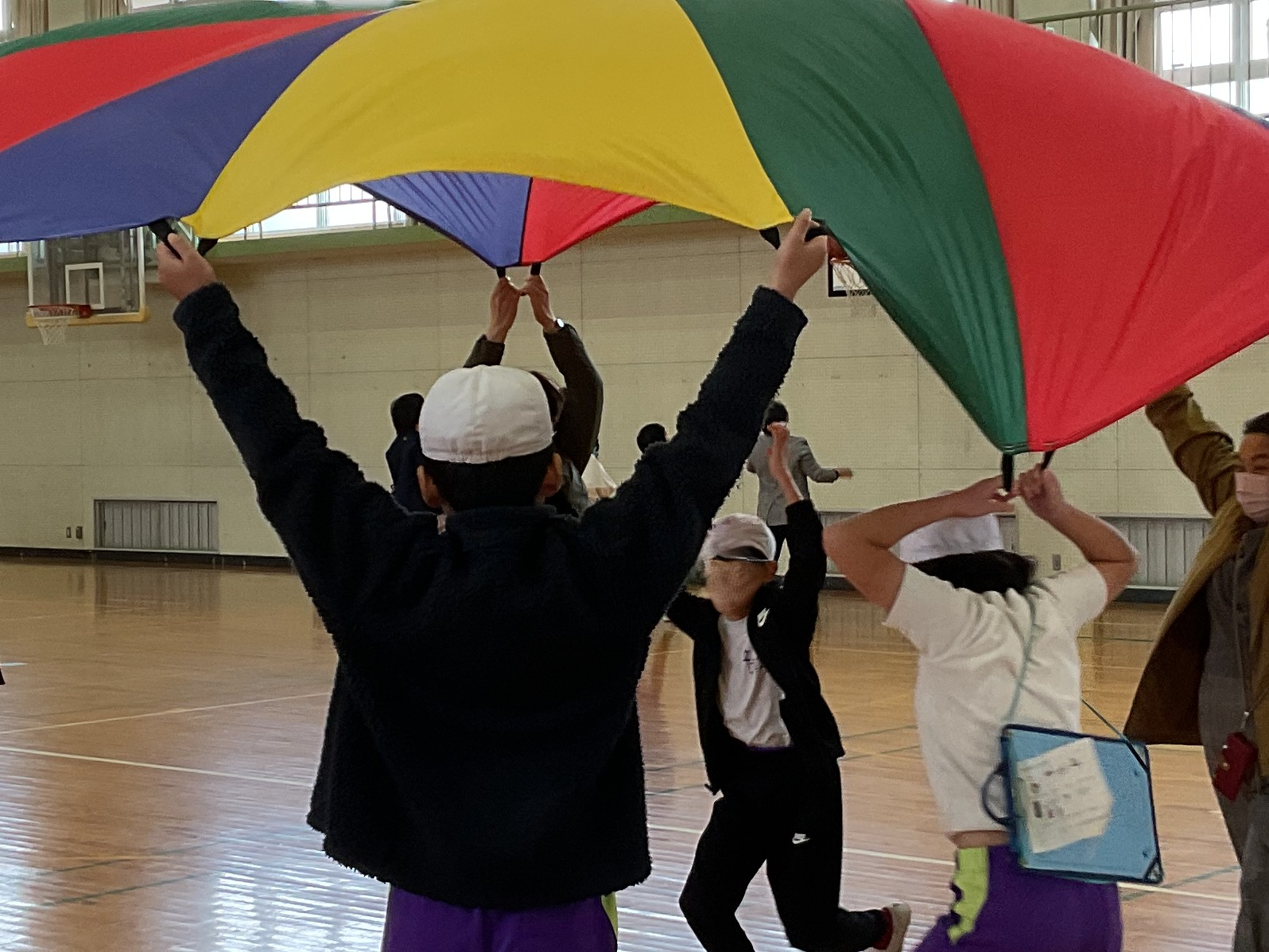 風船バレー・バルーンくぐり・長縄・バスケットゴールの8つのメニューから好きな運動をいっぱい楽しみました。
