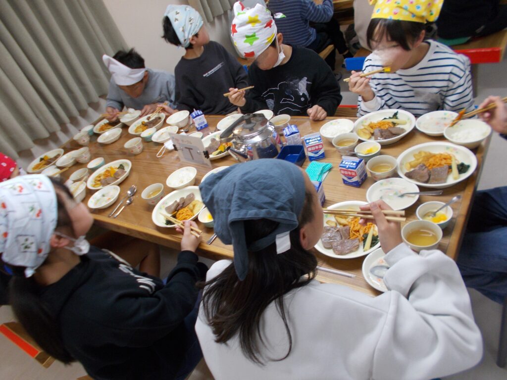 今日の夕食は、うみのこステーキディナーです。近江牛のステーキをメインとした献立です。今まで何度となく食べてきましたが、今日のステーキは今まででいちばんのような気がしました。夕食の後は、夕べの集いでした。サインの交換会やうみのこすごろく、ボッチャをして交流しました。どの班も楽しいひと時を過ごしました。そして就寝準備を行い自分の寝床を作り、1日の振り返りをしました。先ほど消灯時刻を迎えて、船内が静かになりました。1日目は体調を崩す児童もなく、元気に終えることができました。