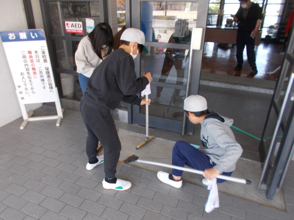 4月8日に入学式前日準備を行いました。新6年生が登校し、教員と一緒に体育館の式場作りや1年・そよかぜ学級、昇降口の掃除や飾りつけなどをしました。それぞれが分担場所を一生懸命に頑張ってくれたおかげで、予定よりも30分くらい早く準備が整いました。学校のリーダーとしての6年生の頑張りに、明日から始まる学校生活に期待が高まりました。