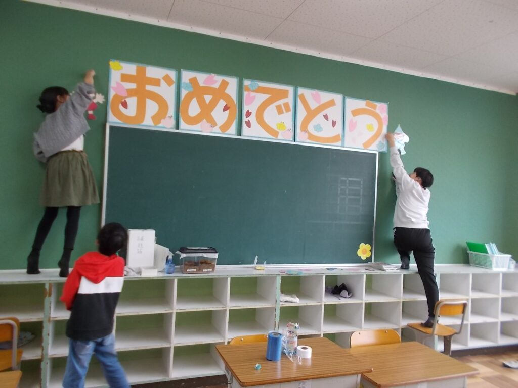 19日(木)の卒業式に向け、この日の午後は、1~4年生と6年生が下校した後に、5年生が卒業式の準備をしてくれました。体育館、6年教室、あおぞら・そよかぜ教室、昇降口、廊下、階段に分かれて一斉に作業を開始しました。どの子も一生懸命で、先生の指示に従い、てきぱきと率先して仕事を進めていきました。仕事の取り合いで言い合いになるくらいのやる気満々ぶりでした。(仕事の押し付け合いでけんかになるのはありがちですが…。素晴らしい5年生たちです。)おかげで、体育館や教室、廊下など明日6年生が使う場所、通る場所がとてもきれいになりました。明日、6年生が立派に小学校を巣立っていくための会場準備が整いました。