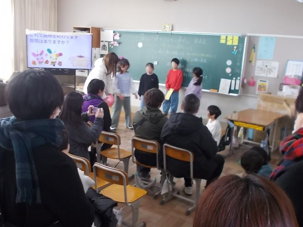 学習参観には、保護者の方々にたくさんお越しいただき、ありがとうございました。最後の参観は、1年間のまとめの意味を込め、この一年でできるようになったことやがんばったことを披露したり、体験したことや調べたことをまとめて発表したり、親子の触れ合いを取り入れたりと、1年間の成功した姿を感じてもらおう、おうちの方へ感謝の気持ちを届けようとの思いのこもった45分間でした。子どもたちの張り切る姿が随所に見られ、また、その気持ちをしっかりと受け取っているおうちの方々の気持ちも感じられ、いつもの参観日とは違う空気を感じました。お子さんのがんばった姿や気持ちをおうちでも話題としていただければと思います。