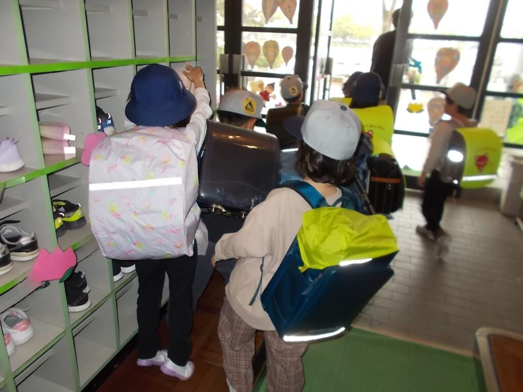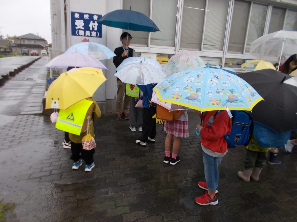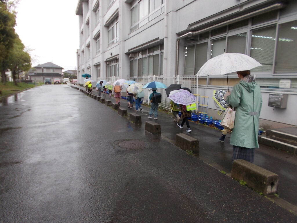 小学校へ入学して5日が経ち、校内生活において初めての経験もありながら、朝や帰りの身支度や給食、下校といった毎日の経験もたくさんあり、経験を重ねていることについては、だんだんと要領を得て行動できるようになってきています。下校に関しては、初めての日は全校集団下校で、登校班のお兄さん、お姉さんと一緒の下校だったので、雨の中でしたが比較的早く学校を出発することができました。今週は1年生だけの下校が始まりました。月曜日は教室で下校についての話を聞いてから下靴に履き替えて外に出ましたが、下校班ごとに並ぶのが難しく、時間がかかってしまいました。火曜日は、もう一度、事前に教室で自分の下校班や一緒に帰る友だちを確認しました。2回目の経験ということもあり、1回目より並び方が良くなりました。今日は雨が降ってきたことを心配しましたが、傘を差しながら自分の並ぶ場所へ行き、点呼を受けることができました。そして、傘を差したときは1列で歩くという約束をしっかりと守って学校を出発しました。徐々に学校生活に慣れてきている様子です。