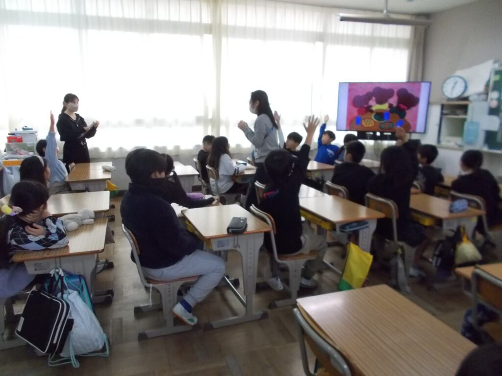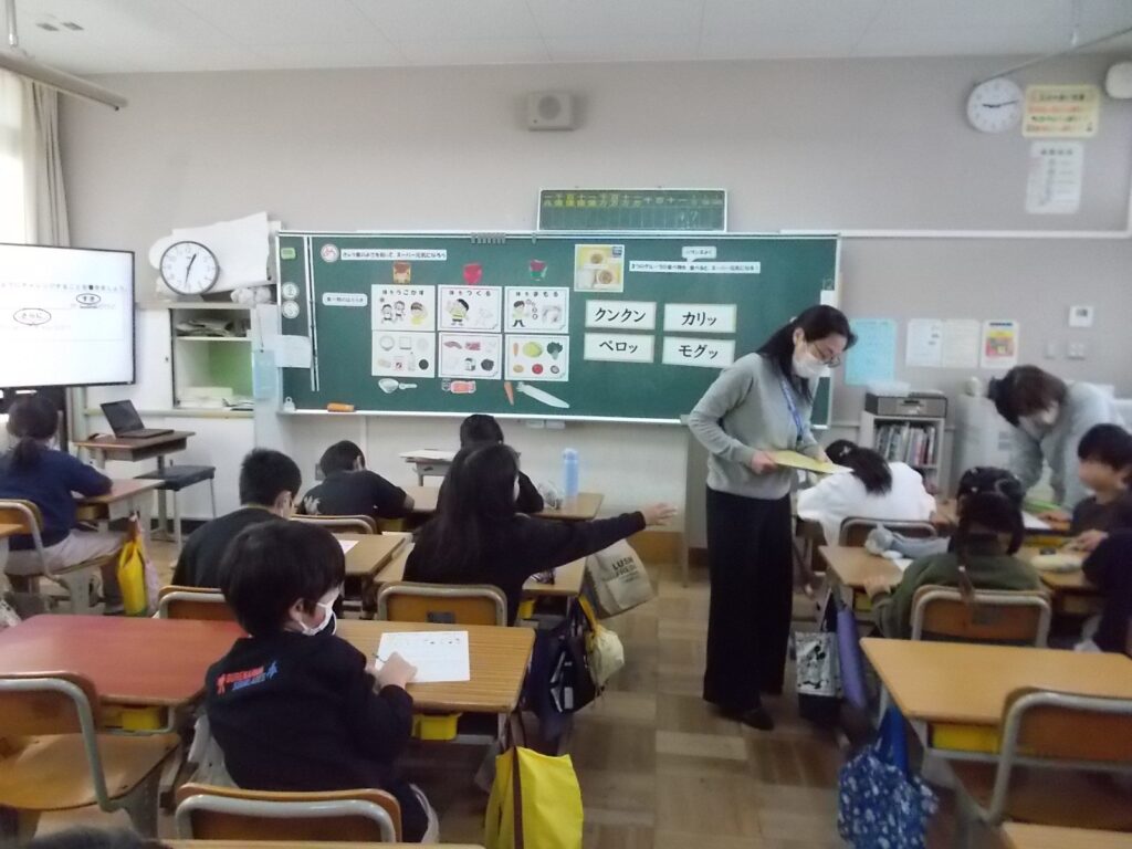 12月4日、3年生は、栄養教諭の先生から給食についての授業を受けました。食べ物の栄養と身体の健康との関係について知り、食べるということに関心をもち、バランスの良い食事を心掛けるきっかけになることをねらっての授業です。学校給食を例に挙げ、食べ物のもつ3つの働きについて説明を受けました。給食の献立を「体を動かす(黄)」、「体を作る(赤)」、「体を守る(緑)」の食品群に分け、食材としてまんべんなく使われていることを知りました。ここで改めて好き嫌いなく食べることの必要性を感じ取り、嫌いなものでも食べようと努力するための工夫について考えました。「好きなものと一緒に食べる」と声を上げる児童もいて、もう、すでに苦手を克服しようと頑張っている児童もいます。成長期の自分の身体を作る食べ物について、知識を深めていってほしいと思います。
