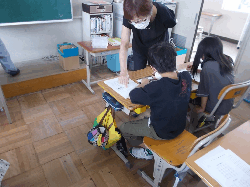 3年生の総合的な学習では、福祉学習をしています。障害のある人について、体験を通して日常の不便さや不便さを補うツールについて知り、自分たちの接し方を考えていく学習です。