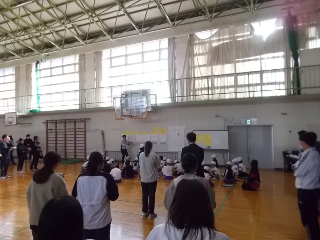 先週の金曜日の4‐1の授業は、小学校教員の体育授業の研修会になっており、県内から80人を超える先生たちが集まりました。子どもたちは、いつもと違う雰囲気に、少々緊張している様子でしたが、ペアを組んで互いの技を見合い、気付いたことを助言していました。より完成度の高い技を目指して練習を続けてほししと思います。