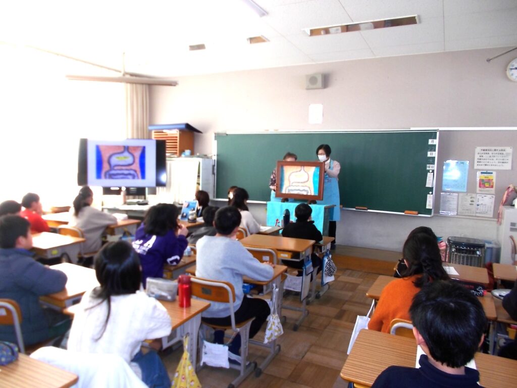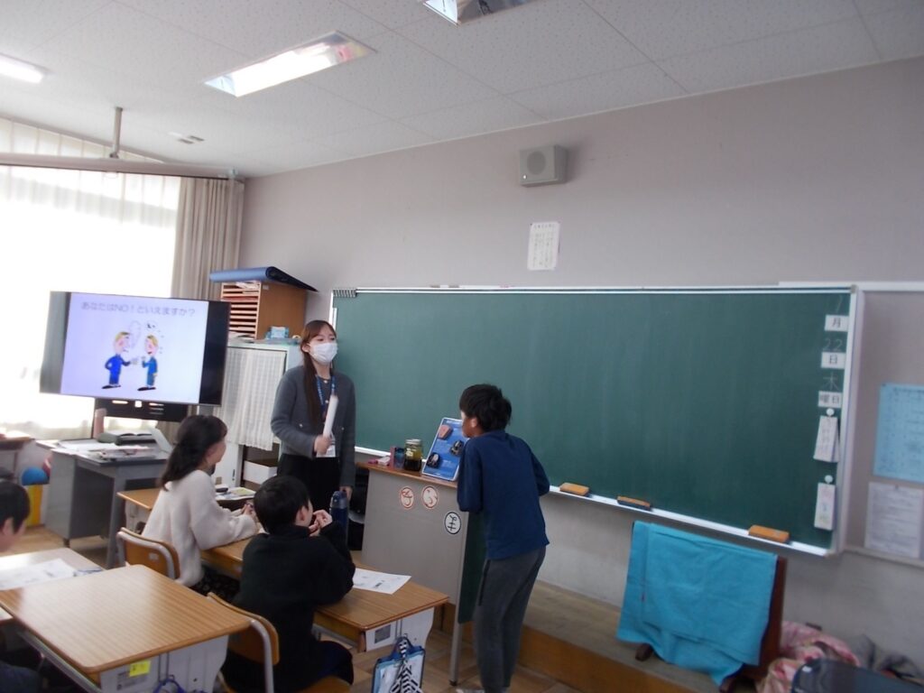 22日(木)に5年生が防煙教室を行いました。市役所のすこやか生活課の職員さんと健康推進員さんにご来校いただき、紙芝居やスライド、模型、ロールプレイングなどを使ってたばこの害について、癌という病気について、たばこを勧められた時の断り方について学習しました。たばこには依存性があること、たばこを吸うと呼吸器の病気にかかりやすくなること、主流煙より副流煙の方が体に悪いこと、たばこを吸うことで発症リスクが高くなる「癌」という病気について、加熱式たばこの危険性についてなど、様々なことを具体的に説明していただきました。最後は、好奇心などで10代でもタバコを吸ってしまう人がいるという話から、勧められた時にどう断ればよいかをロールプレイ形式で考えました。健康な生活、健やかな成長のためには、たばこは不要です。20歳未満は法律でも禁じられています。誘惑に負けず、自分の身体を考えた正しい判断、行動ができるようになるための大切な学びの時間となりました。